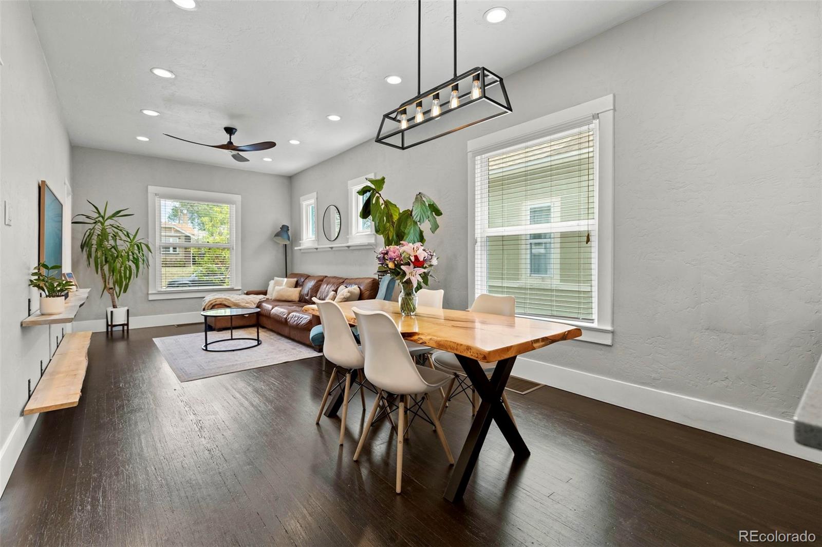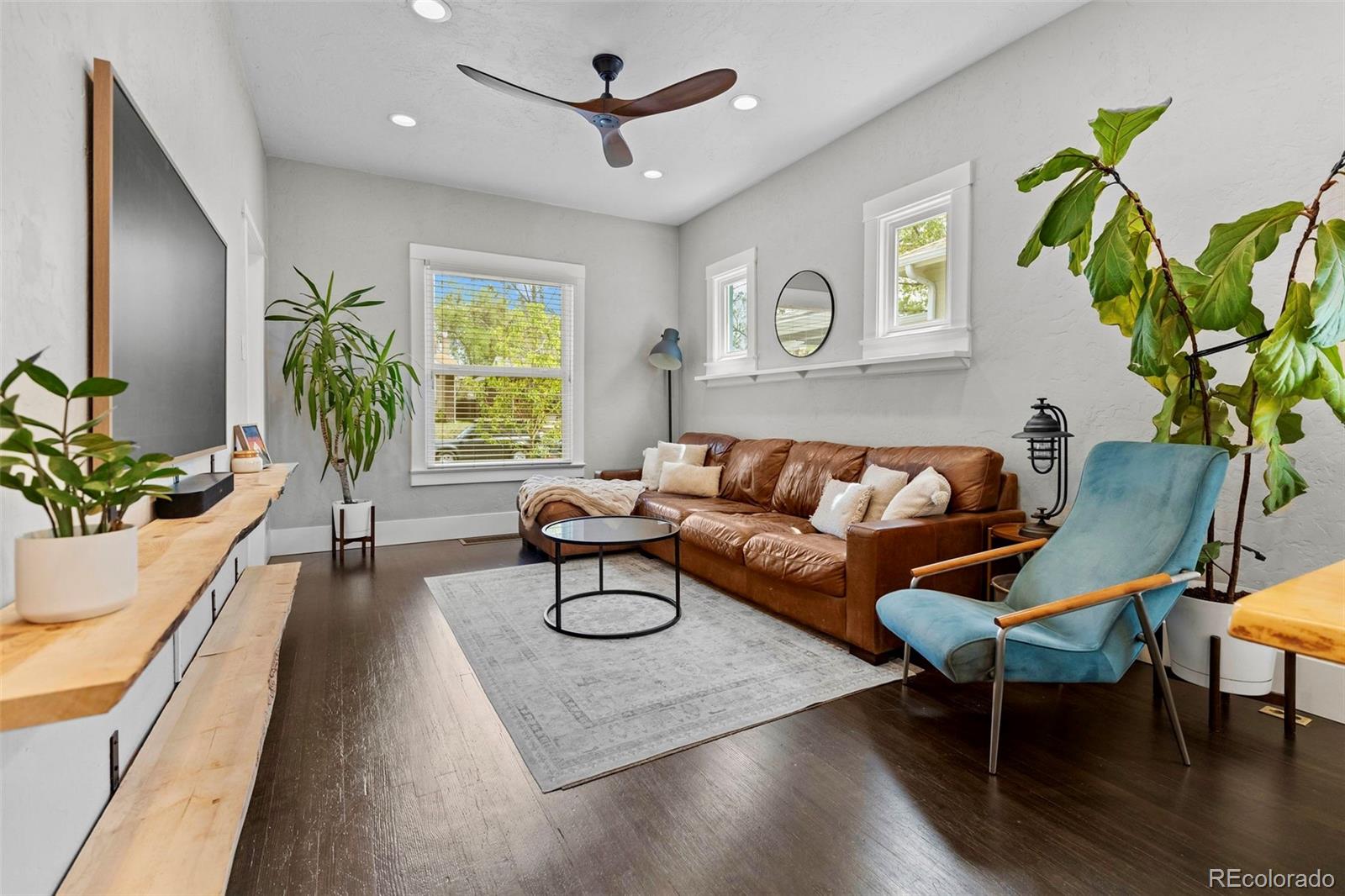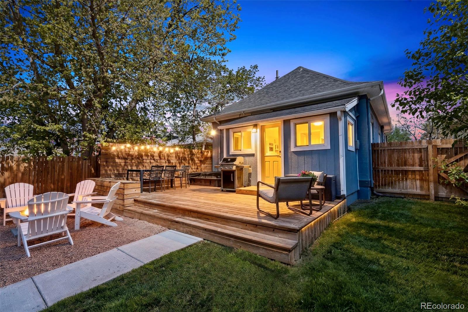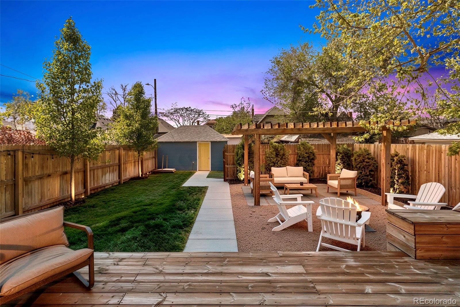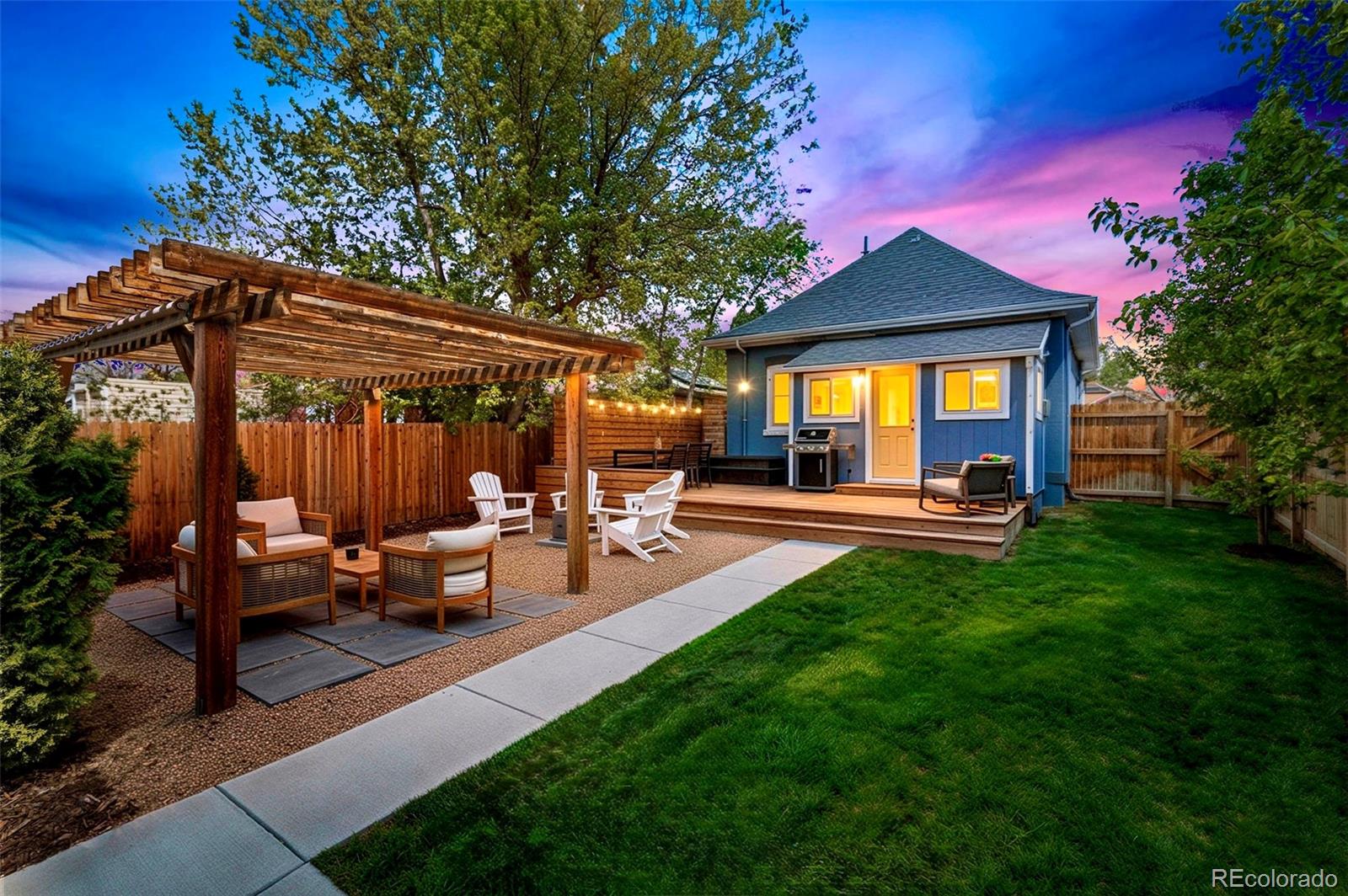 A 1910 bungalow featuring turn-of-the-century charm with 9.5' ceilings, original hardwoods, and custom five-panel doors throughout. The kitchen includes quartz countertops, designer cabinetry, and stainless appliances leading to a dedicated mudroom with built-in coffee station and wine fridge. Two bedrooms and updated bathroom on the main floor, plus a finished basement with two additional egress bedrooms, second updated bathroom, and ample storage. Expand your living space into the private backyard, perfect for entertaining or relaxing. Exterior features include a fully fenced yard with professional landscaping, sprinkler system, private patio with hot tub, fire pit area, and timber pergola. All of this just a short walk to City Park and the Zoo or easy bike access to RiNo and Uptown.