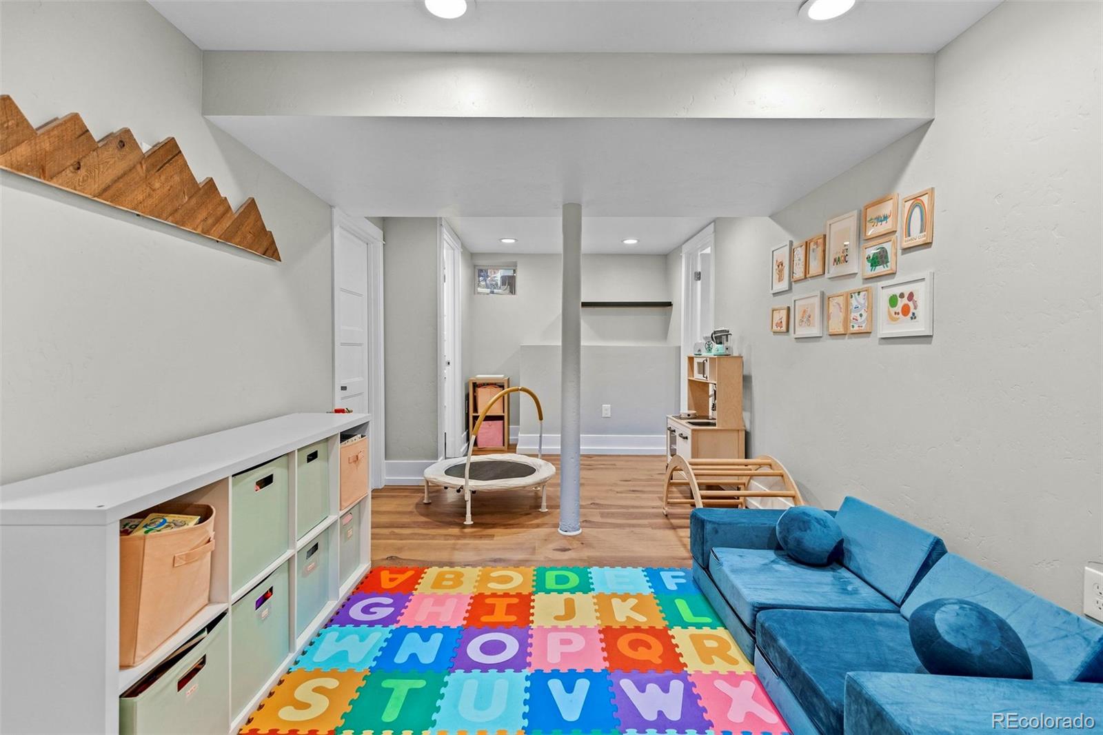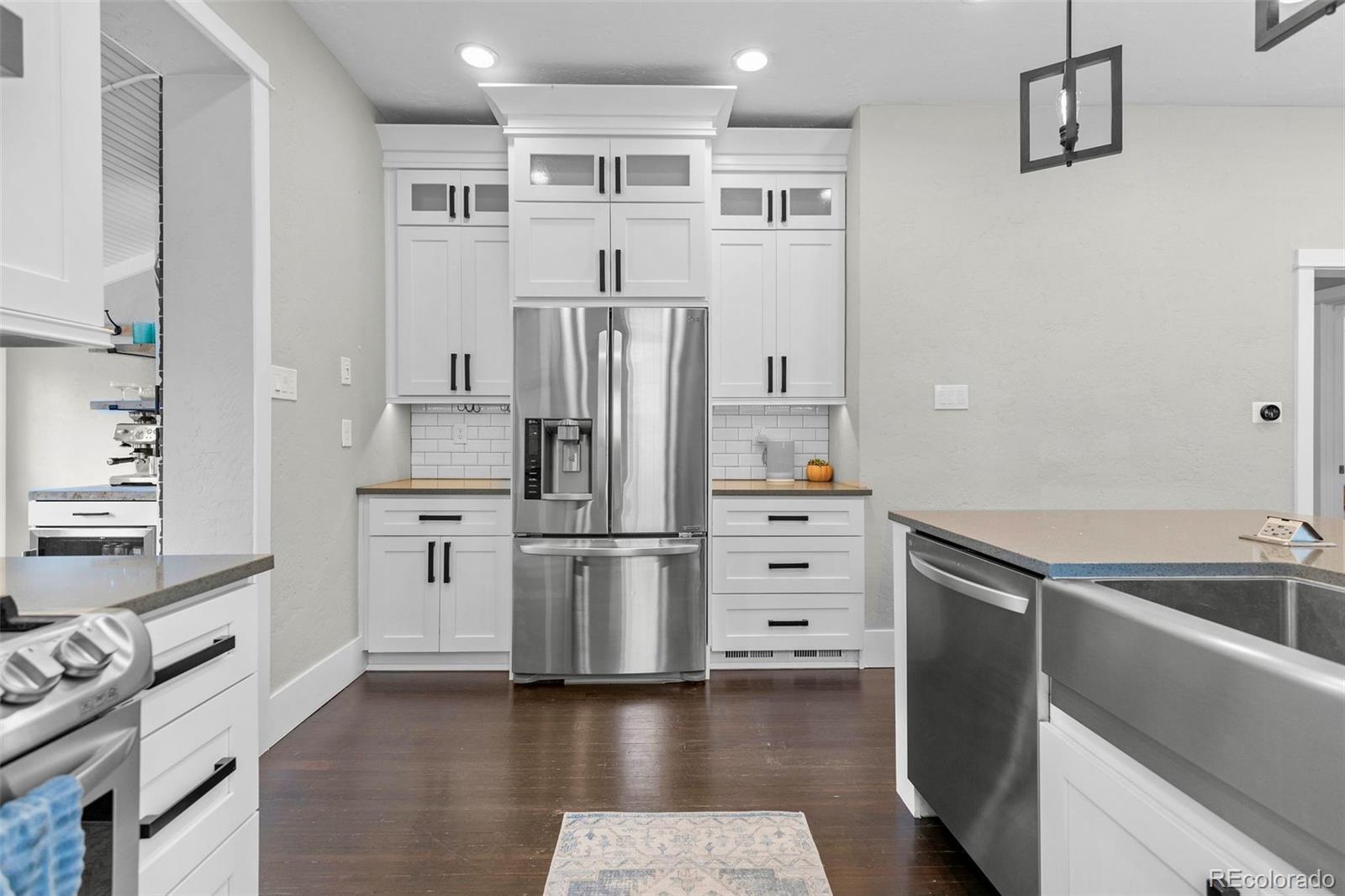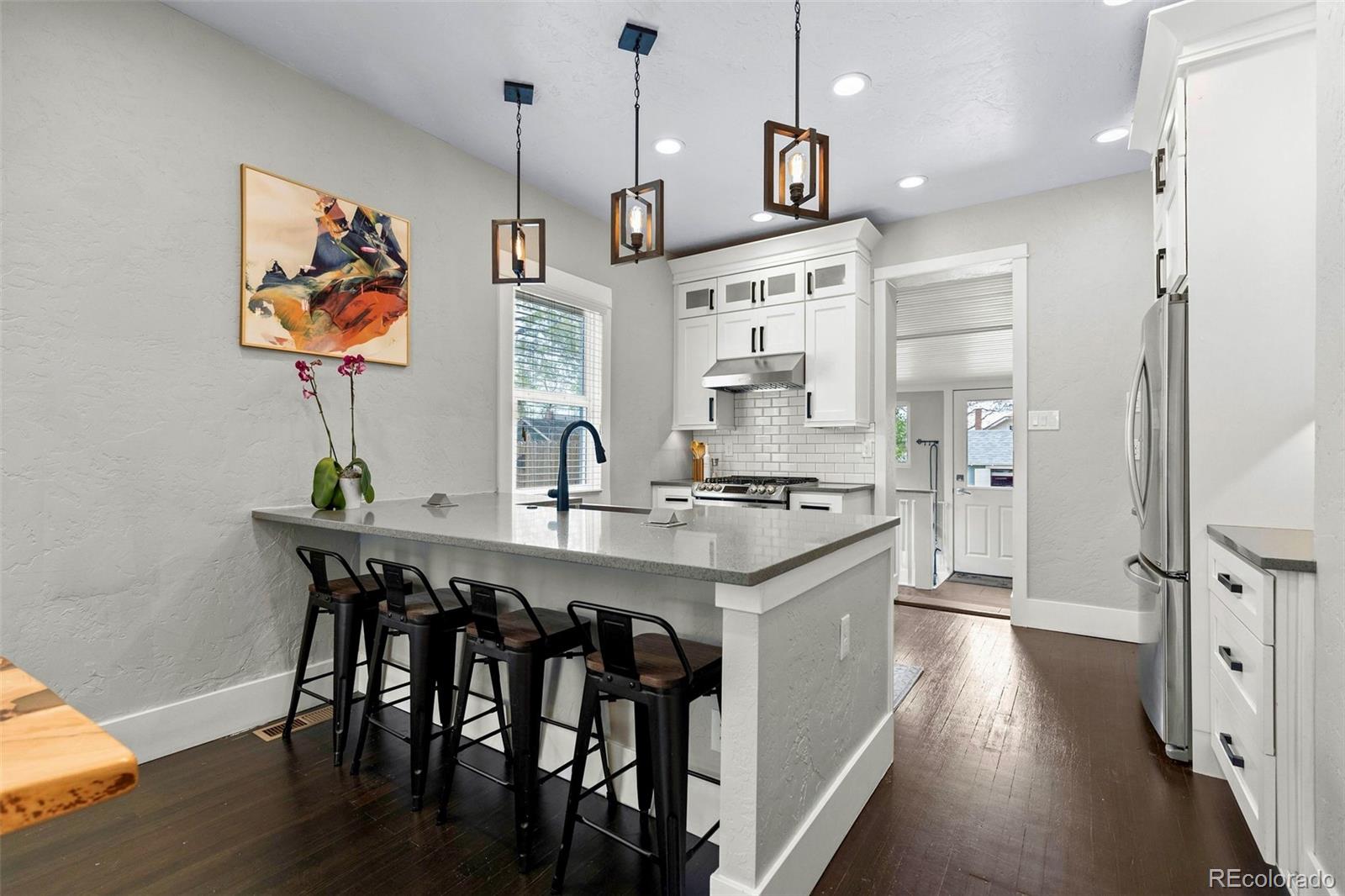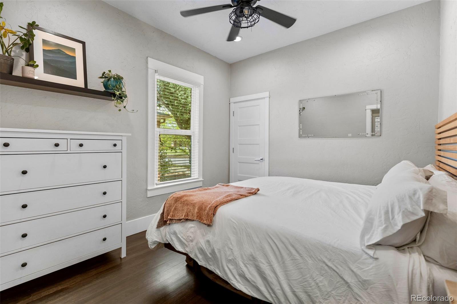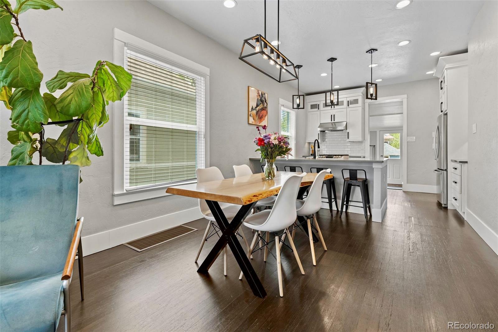 A 1910 bungalow featuring turn-of-the-century charm with 9.5' ceilings, original hardwoods, and custom five-panel doors throughout. The kitchen includes quartz countertops, designer cabinetry, and stainless appliances leading to a dedicated mudroom with built-in coffee station and wine fridge. Two bedrooms and updated bathroom on the main floor, plus a finished basement with two additional egress bedrooms, second updated bathroom, and ample storage. Expand your living space into the private backyard, perfect for entertaining or relaxing. Exterior features include a fully fenced yard with professional landscaping, sprinkler system, private patio with hot tub, fire pit area, and timber pergola. All of this just a short walk to City Park and the Zoo or easy bike access to RiNo and Uptown.